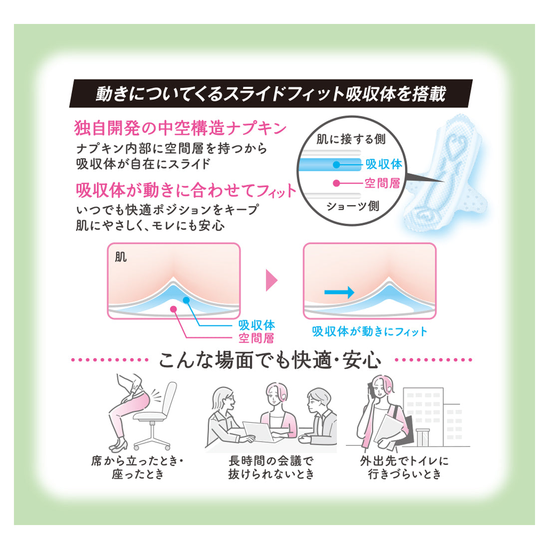 ●動きについてくるスライドフィット吸収体を搭載