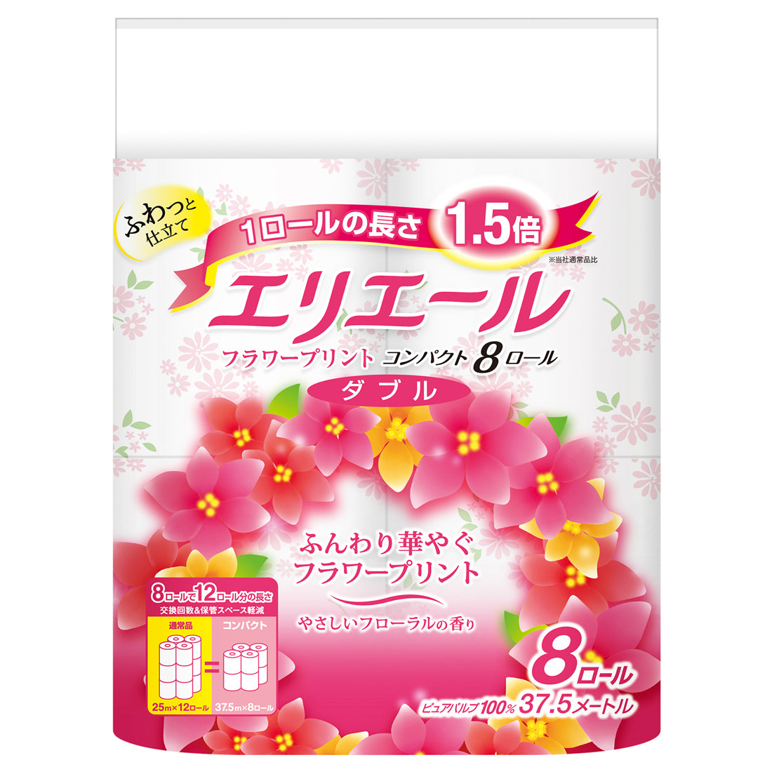 [通常品] 25m×12ロール = [コンパクト] 37.5m×8ロール。