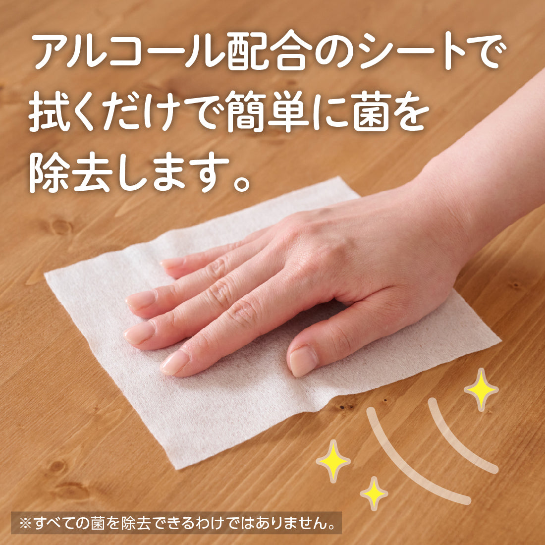アルコール配合のシートで、拭くだけで簡単に菌を除去します。