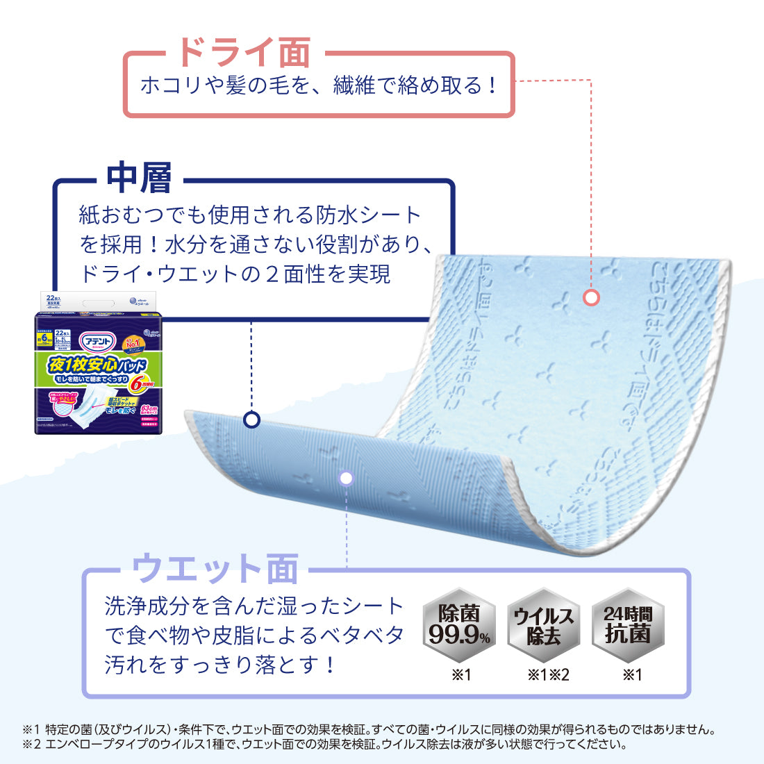 ドライ面ではほこり・髪の毛をキャッチ、ウエット面では油・皮脂汚れを拭き取る。