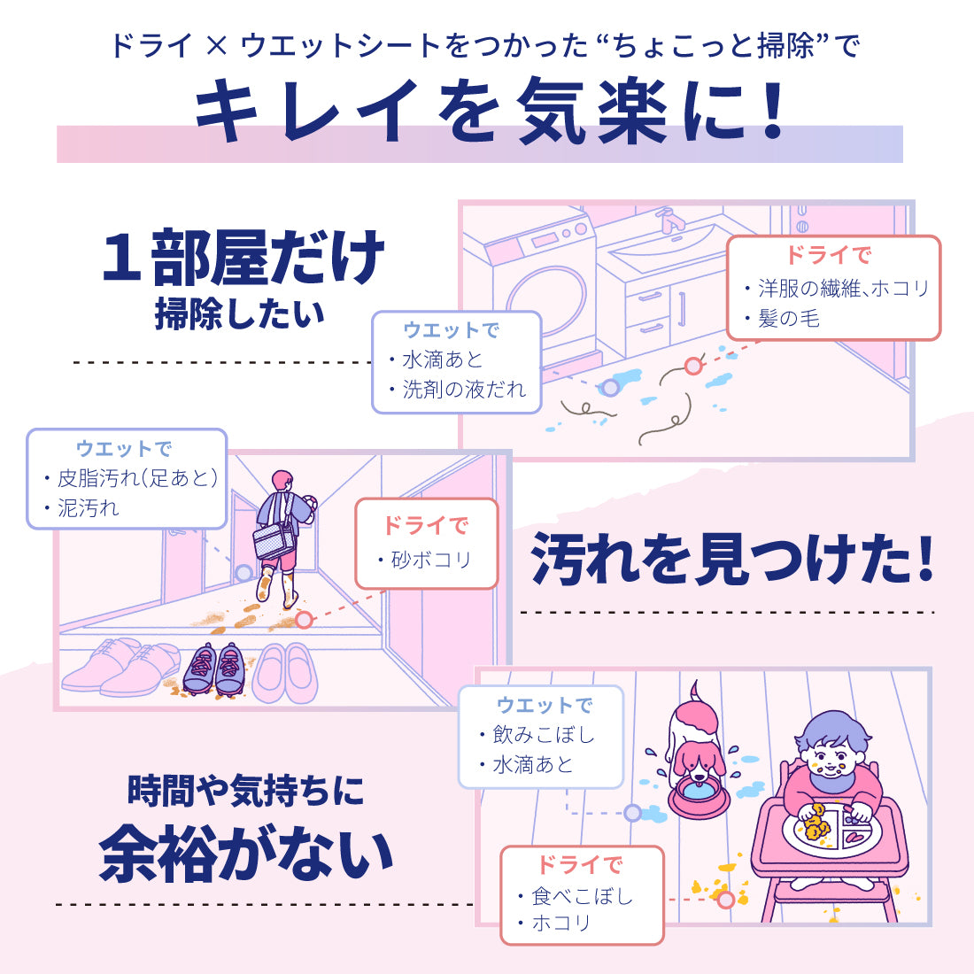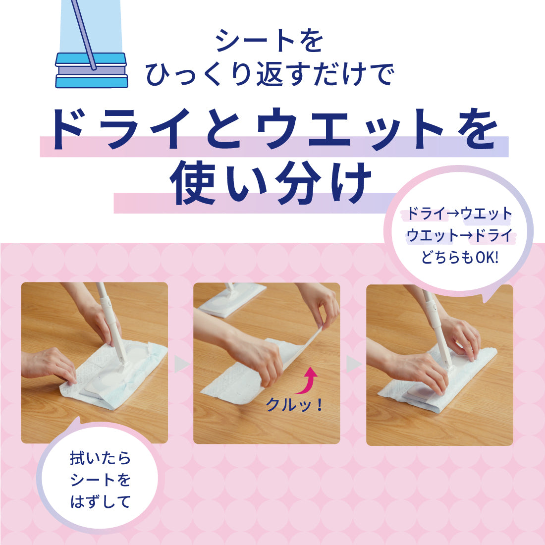 ドライシートとウエットシートを手間なく一緒に使えて、効率的に床がキレイに!