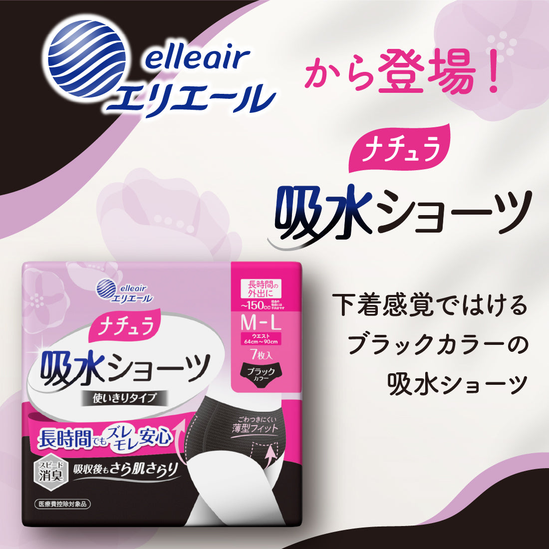 下着感覚ではけるブラックカラーの吸水ショーツ