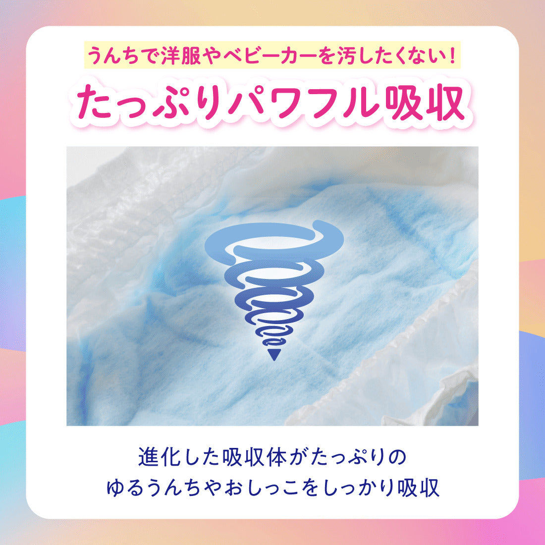 進化した吸収体がたっぷりのゆるうんちやおしっこもパワフル吸収。