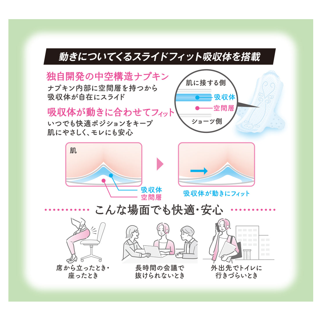 ●動きについてくるスライドフィット吸収体を搭載