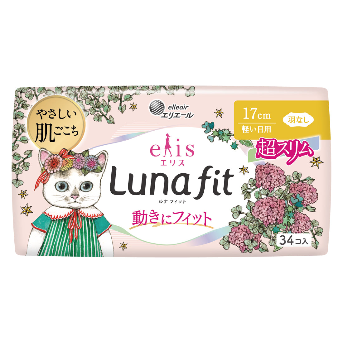 ●≪ヒグチユウコ企画品≫エリス Luna fit ルナフィット 超スリム(軽い日用)羽なし17cm 34枚x1パック